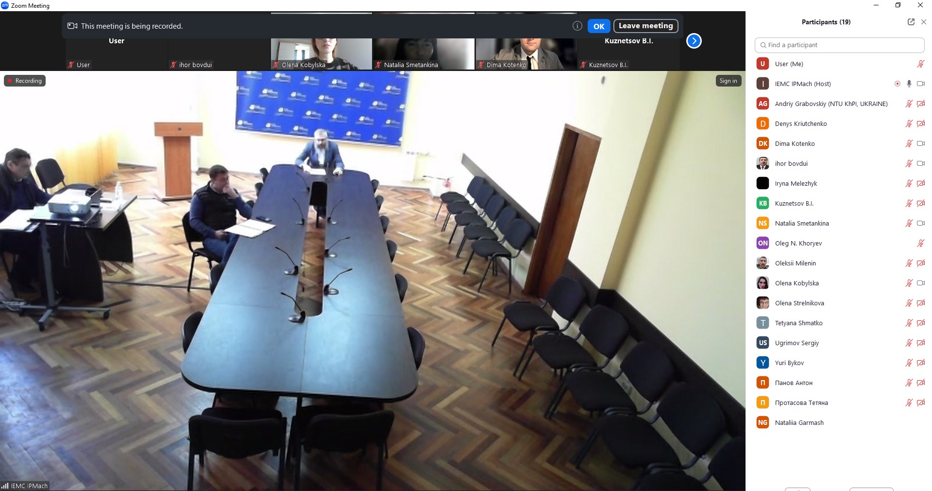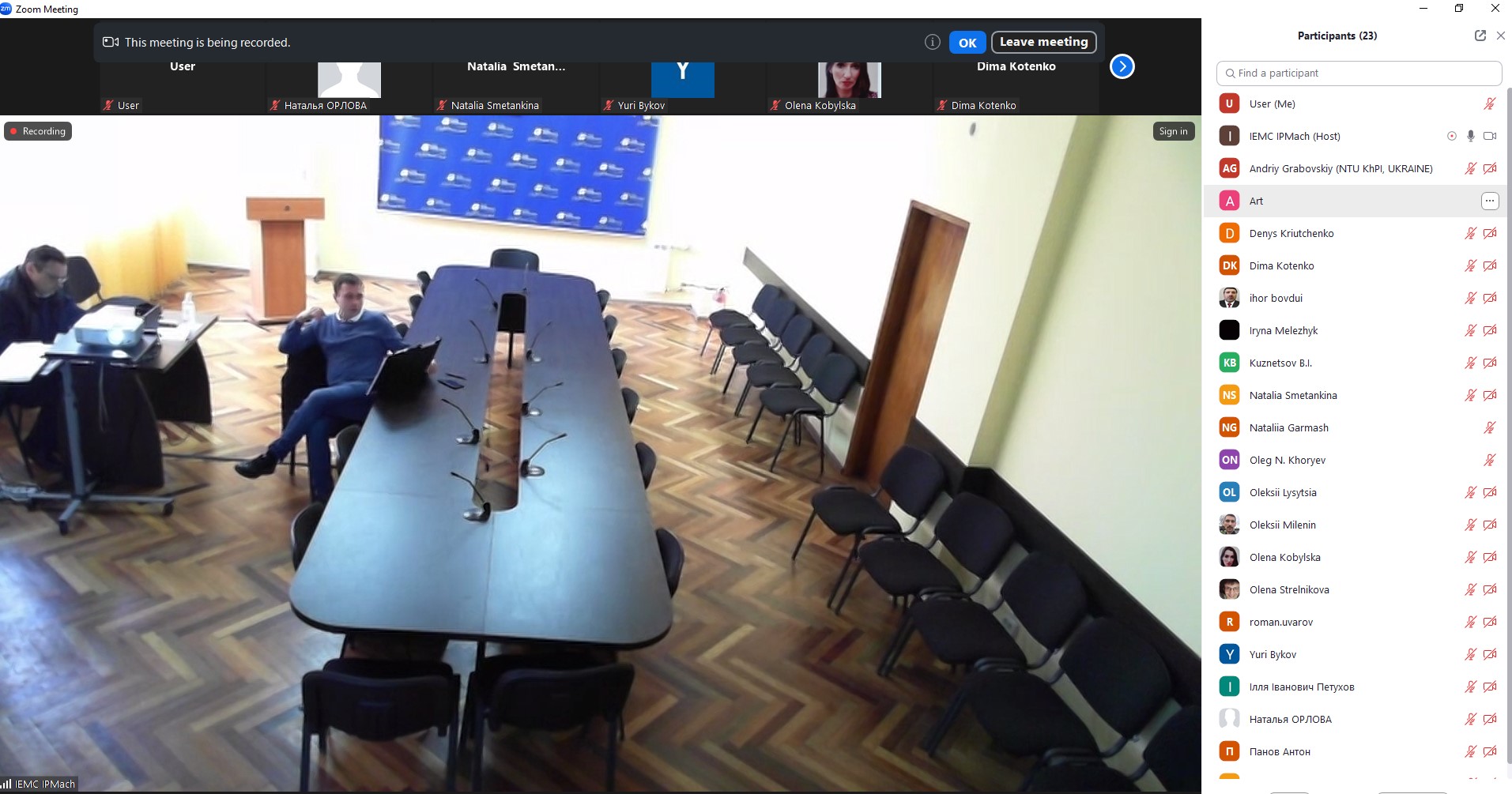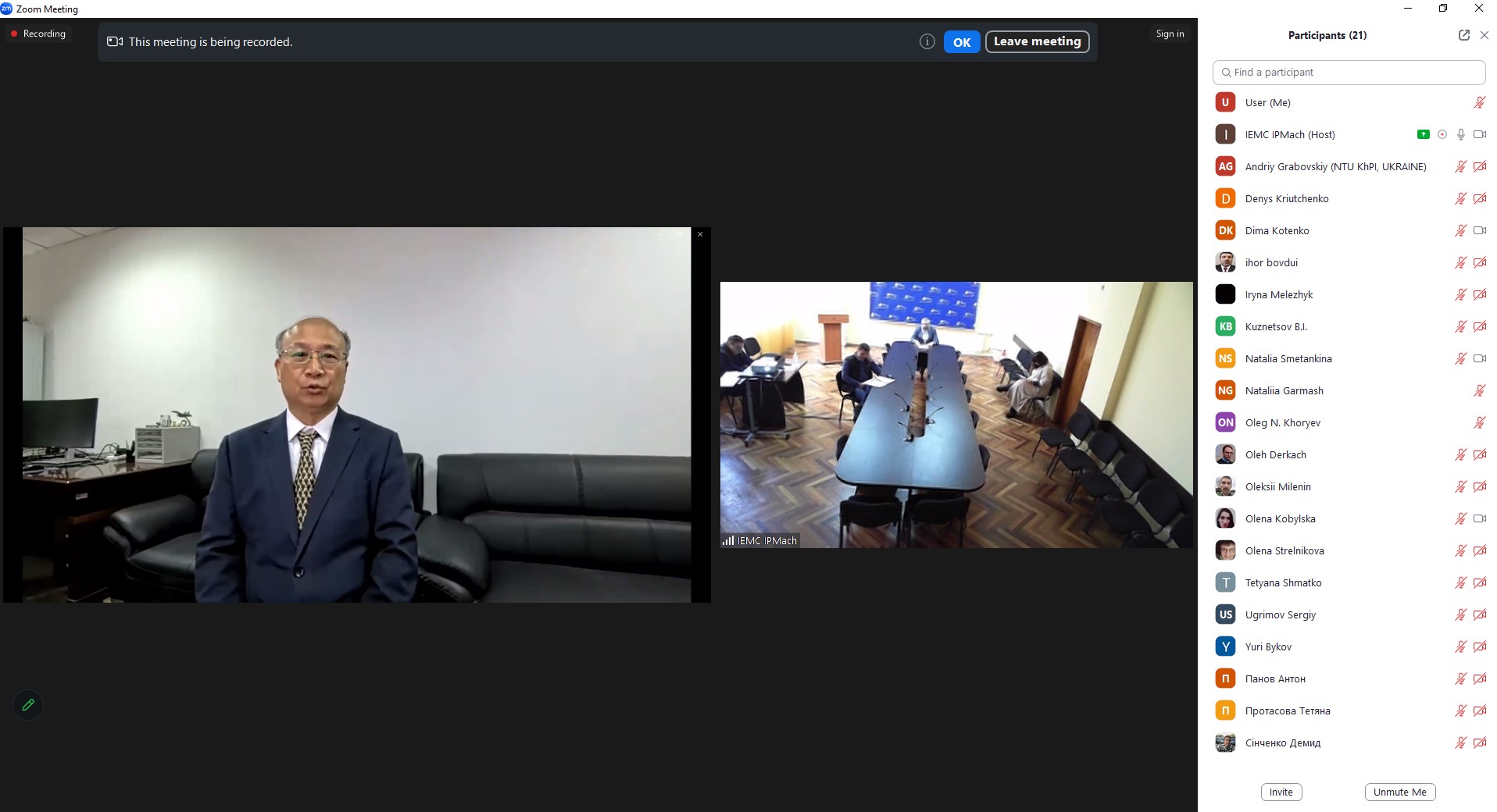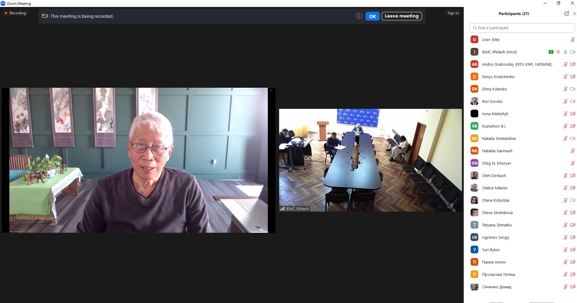 На початку заходу учасників привітали голова організаційного комітету чл.-кор. НАН України Андрій КОСТІКОВ (ІЕМС НАН України), Алекс ЧЕНГ (Університет Міссісіпі, Оксфорд, США), Ксяо-Вей ГАО (Даляньський технологічний університет, КНР), Антон Ткачук (Карлстадський університет, Карлстад, Швеція).