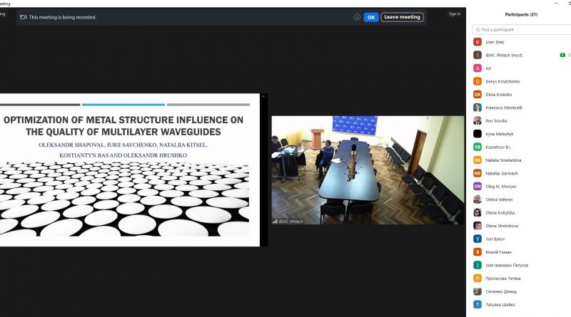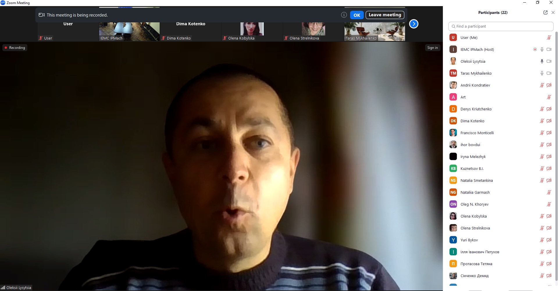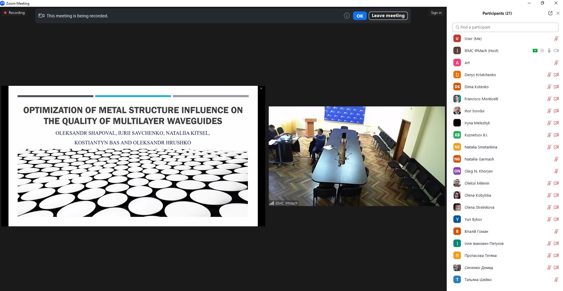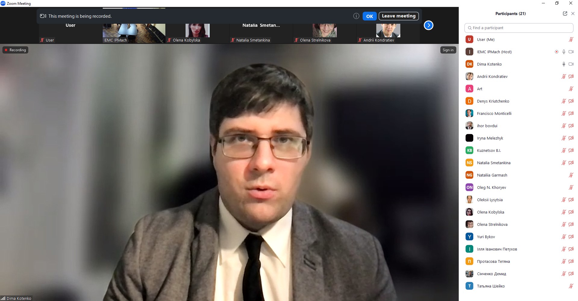 На початку заходу учасників привітали голова організаційного комітету чл.-кор. НАН України Андрій КОСТІКОВ (ІЕМС НАН України), Алекс ЧЕНГ (Університет Міссісіпі, Оксфорд, США), Ксяо-Вей ГАО (Даляньський технологічний університет, КНР), Антон Ткачук (Карлстадський університет, Карлстад, Швеція).